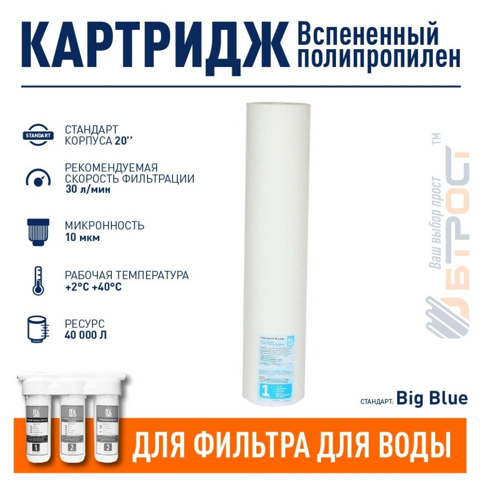 Картридж 20BB механической очистки воды, вспененный полипропилен, 10 мкм, 1 ступень (PP-20-10 Jumbo) интересное:
