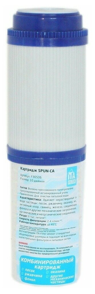 Ниже Вы можете прочитать отзывы на Картридж для фильтра ITA (SPUN-CA-10, (F30506)), ознакомится с подробными характеристиками, посмотреть интересные обзоры и фотографии на Картридж для фильтра ITA (SPUN-CA-10, (F30506)).