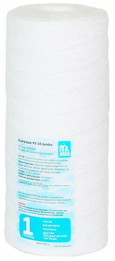 Картридж ITA PS-10 Jumbo - 5 микрон для фильтра воды F30203-5 интересное:
