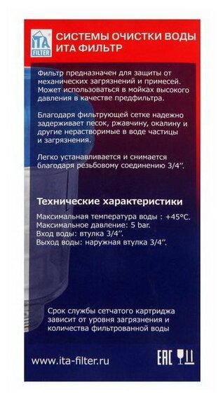 Фильтр для бытовой техники ITA Filter F50119-1, нейлоновая сетка, 3"