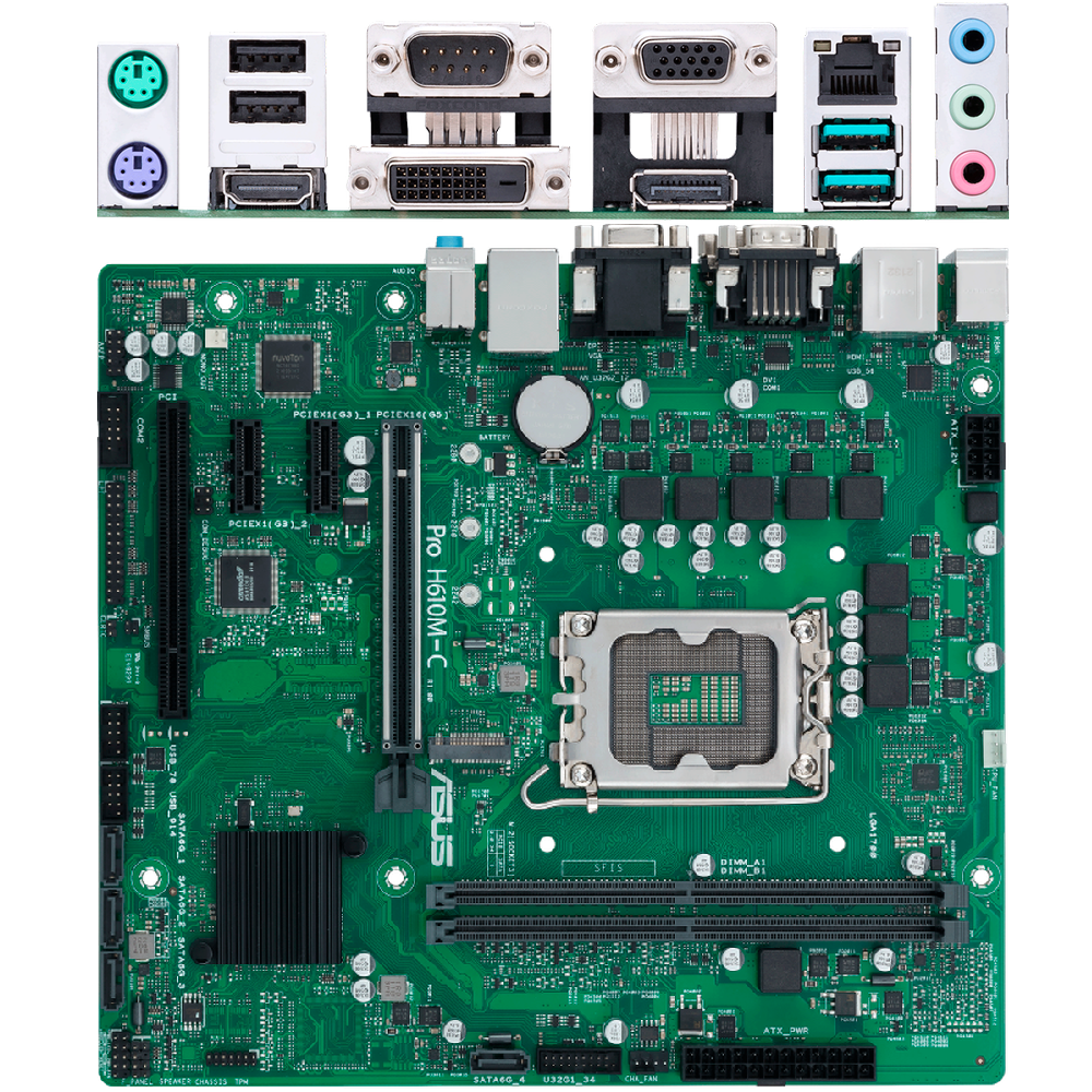 Материнская плата ASUS PRO H610M-C-CSM, LGA1700, B610, 2xDDR5, D-sub+DP+DVI+HDMI, SATA 6.0, M.2, USB 3.2*2, USB 2.0*2, COM, mATX