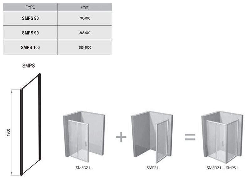 Боковая стенка душевого ограждения Ravak Smartline 100х190см, арт. 9SLA0A00Z1, 6 мм, левая, smps-100 l хром + транспарент