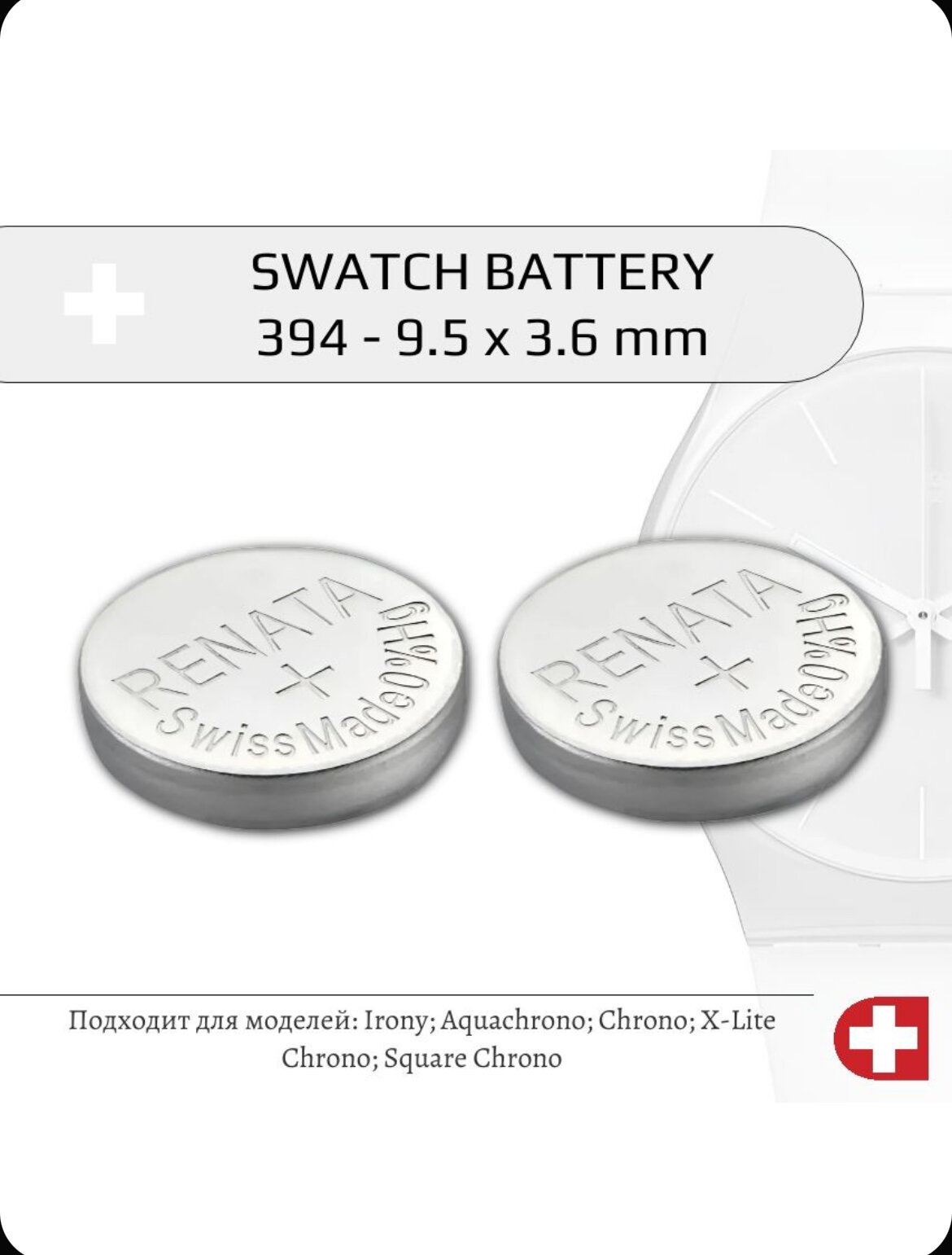 Батарейка Renata 394 Швейцария, упаковка 2 шт.