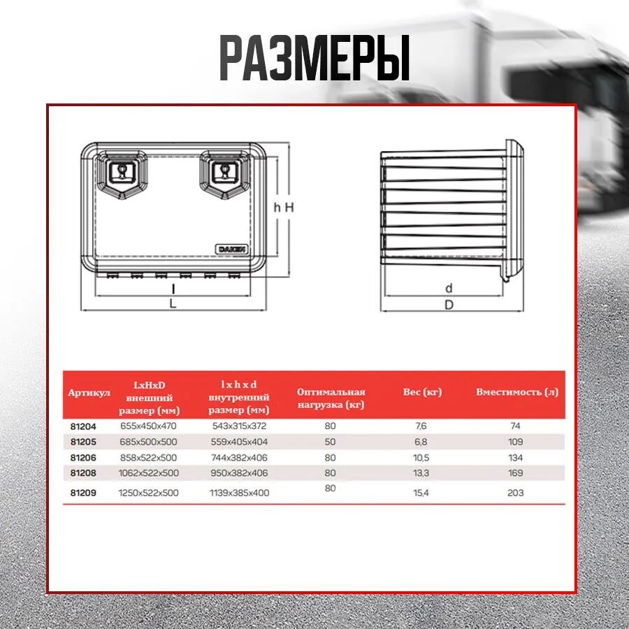 81206004 Ящик инструментальный 858x522х500 серия ARKA 800 (V=134л) DAKEN