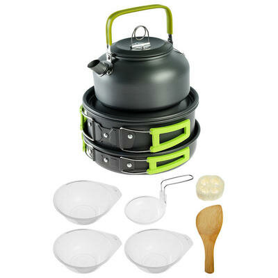 | Отзыв: | Сначала показалось, что наборчик малюсенький, но испытав в походных условиях поняли, что на двоих вполне достаточно размера) Воды в полном чайнике хватает на две большие кружки, кастрюли хватает на четыре приёма пищи. Единственное, что тарелочки махонькие, конечно. Как половник обычный домашний )) В целом, я довольна набором) Размер сковородки и чайника можно понять по зажигалке)) |