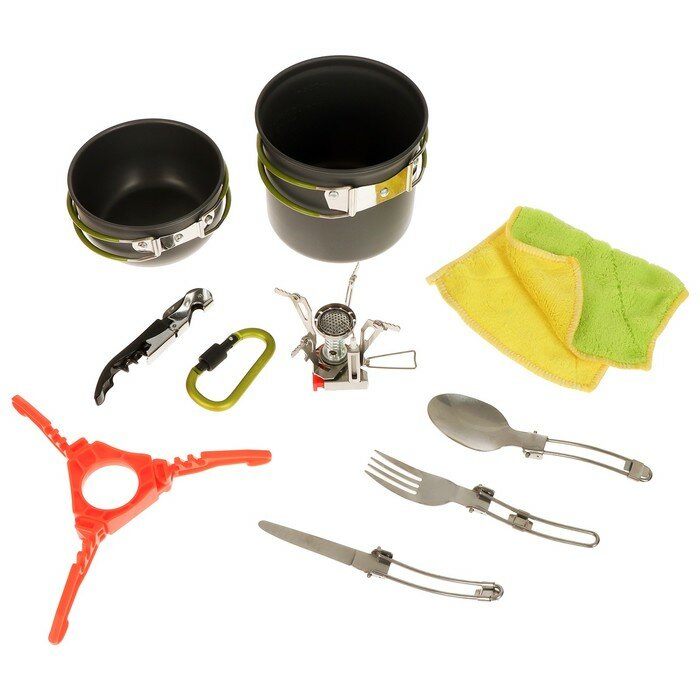 Купить Maclay Набор посуды туристический (кастрюля 2шт, приборы, горелка, штопор, тряпка, карабин)
