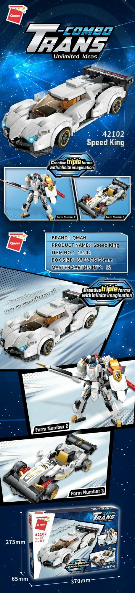 Конструктор Qman Speed King 3 в 1 42102 Combo Trans / 428 деталей