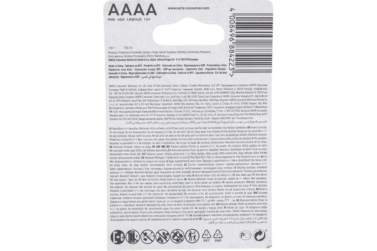 Батарейка VARTA Alkaline 4761 AAAA LR61 25A BL2, упаковка 2 шт.
