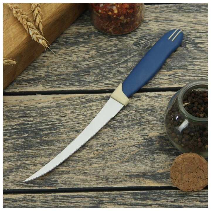 Доляна Нож кухонный для цитрусовых Доляна «Страйп», зубчатое лезвие 11,5 см, цвет синий