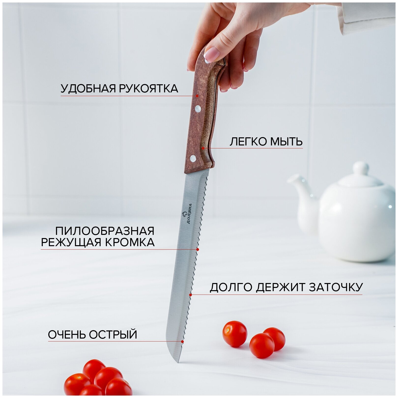 Доляна Нож для хлеба Доляна Ecology, лезвие 20 см, цвет коричневый