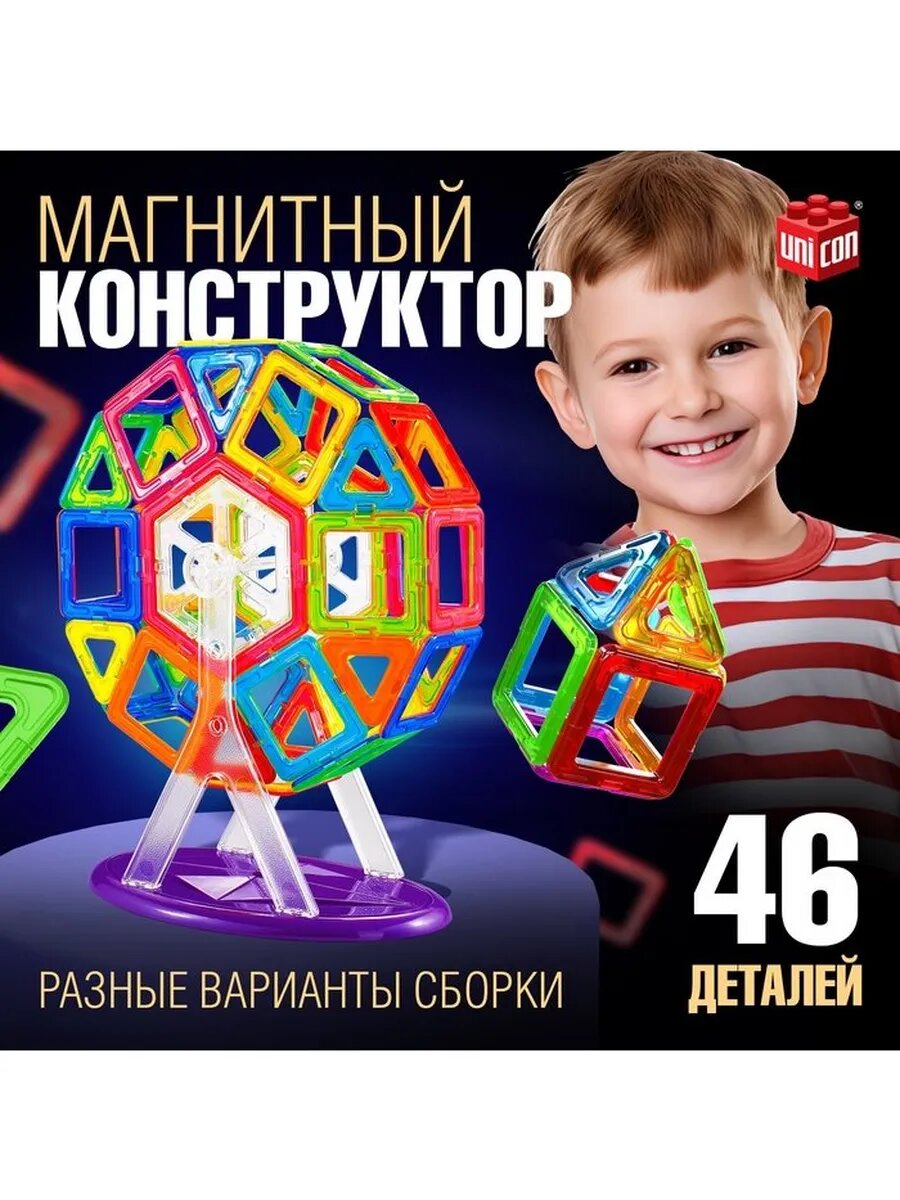 Магнитный конструктор UNICON "Magical Magnet", 46 деталей