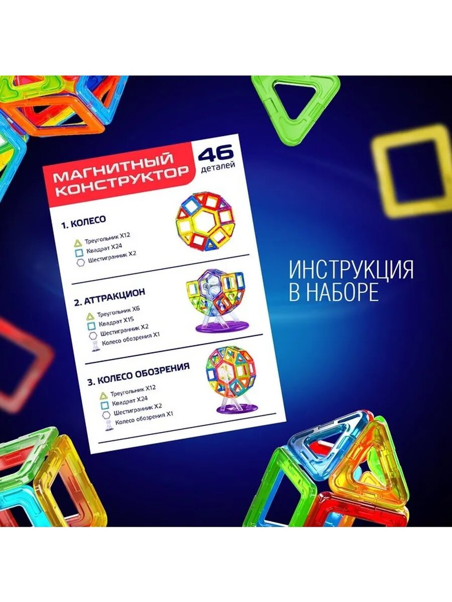 Магнитный конструктор Magical Magnet, 46 деталей, детали матовые 3568164 .