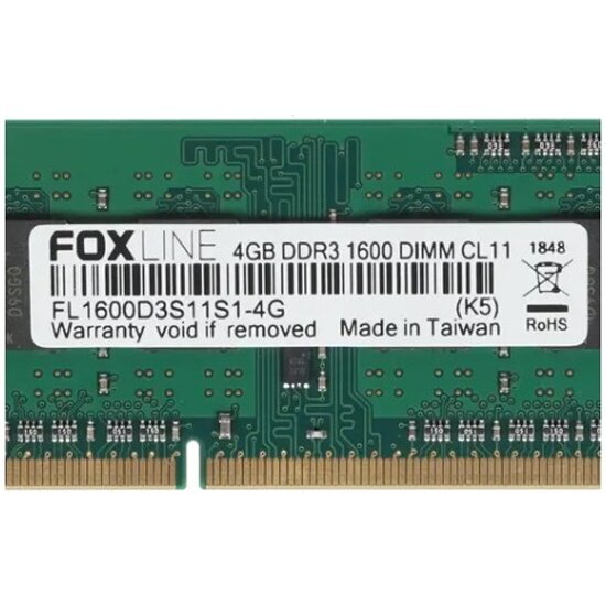 Оперативная память FOXLINE SODIMM 4GB 1600 MHz DDR3 (FL1600D3S11S1-4G)