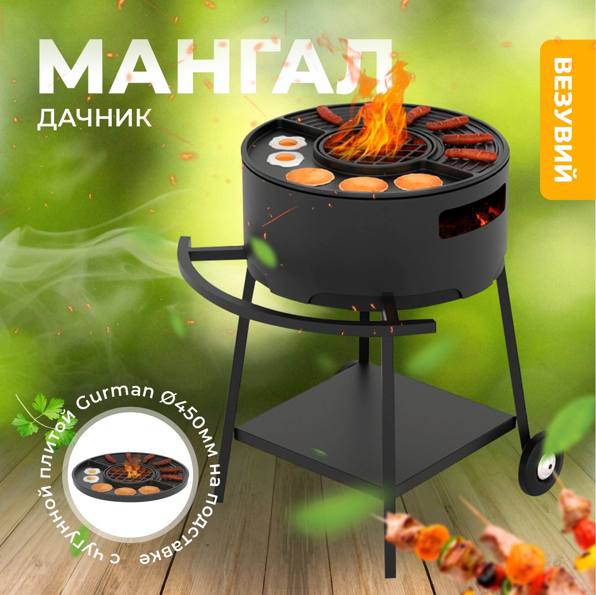 Мангал Везувий Дачник с чугунной плитой Gurman Ø450мм на подставке интересное: