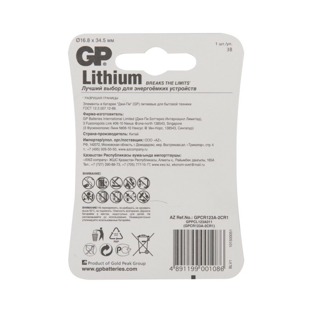 Батарейка GP CR123A (DL123A, CR17345) литиевая BL1 интересное: