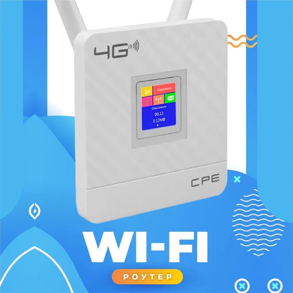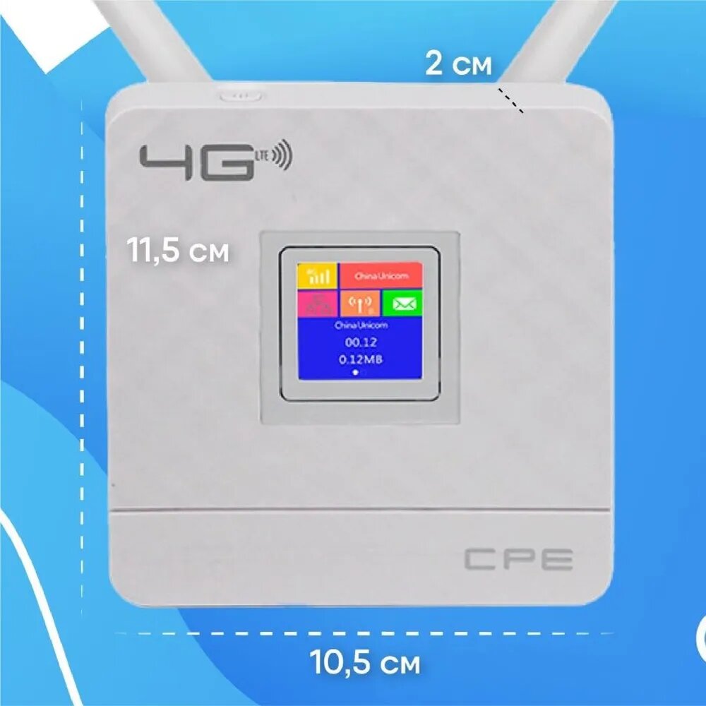Wi-Fi-роутер с поддержкой сим-карт 4G, LTE, CPE, с двумя внешними антеннами/цветной дисплей / порт WAN/LAN / 2.4Ггц / интересное: