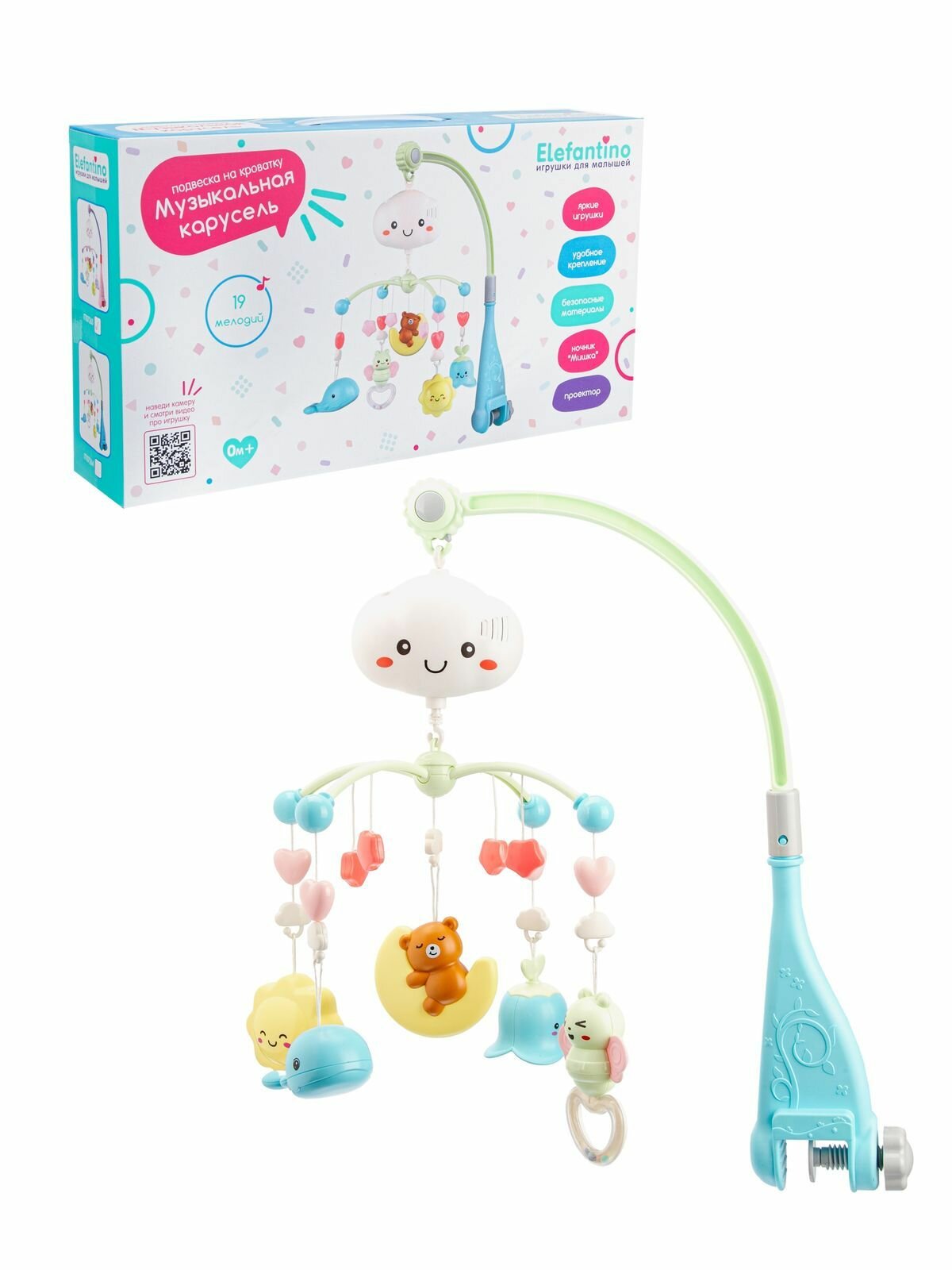 Мобиль музыкальный проектор, ночник, 19 мелодий, Elefantino, 1 шт интересное: