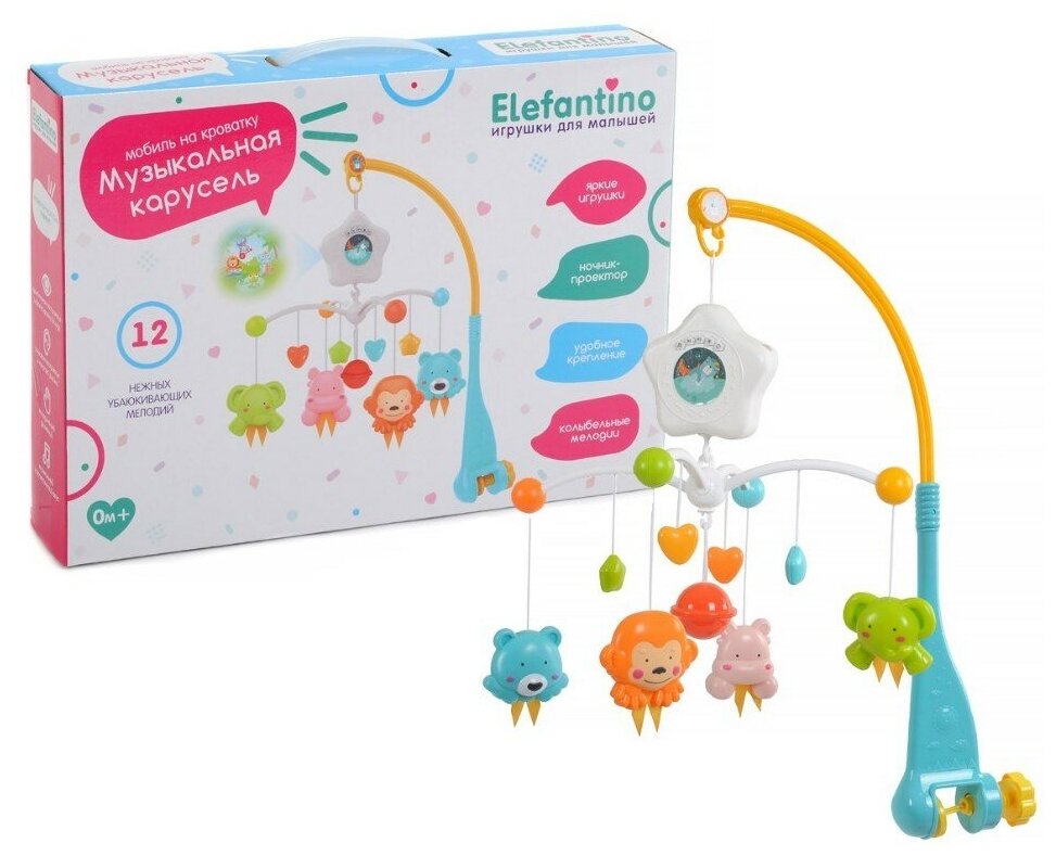 Купить Мобиль на кроватку / карусель на кроватку музыкальная, 12 мелодий, регулировка громкости, ночник-проектор, игрушки 4шт