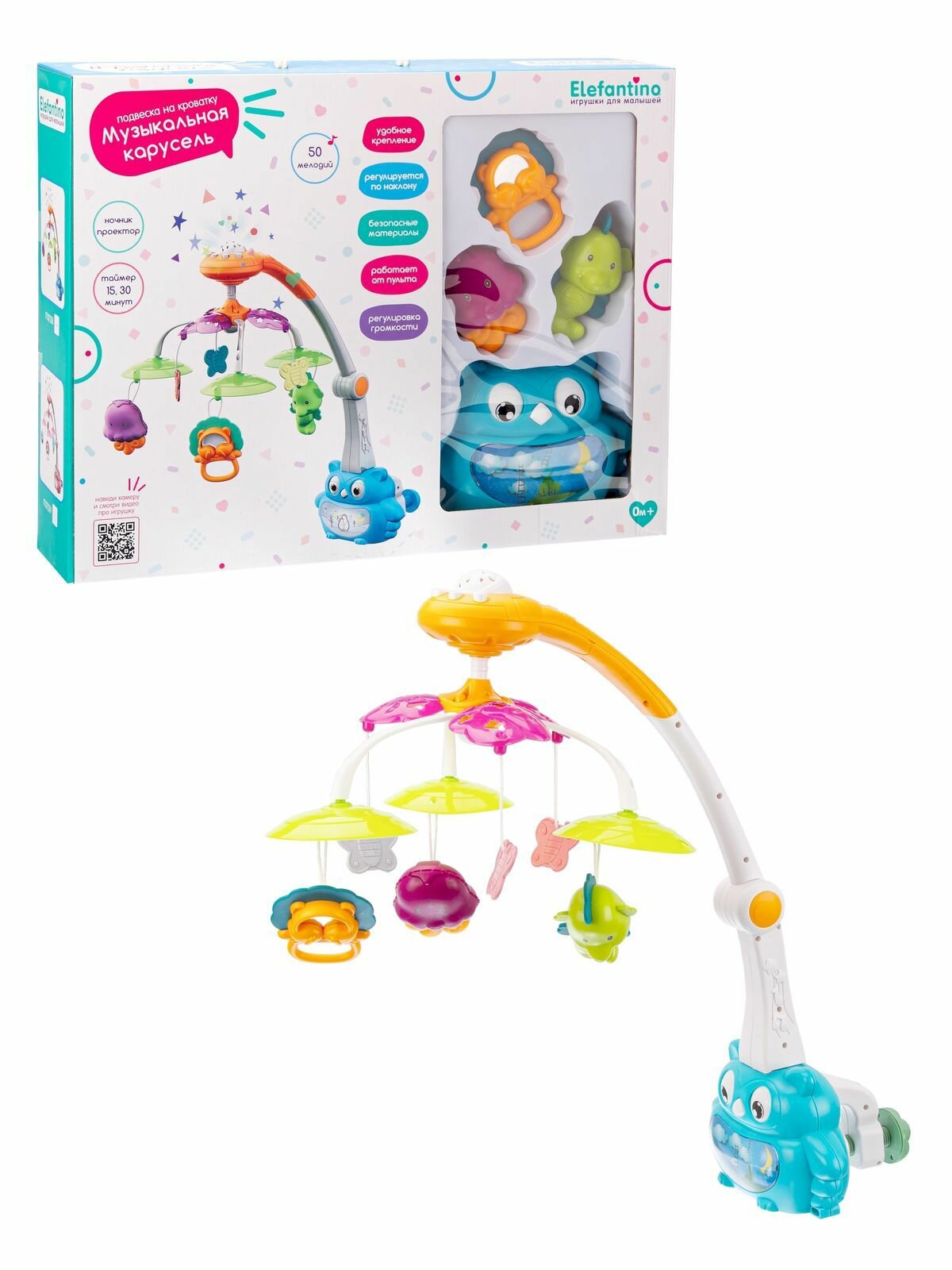 Купить Мобиль музыкальный, ночник-проектор, 50 мелодий, таймер, Elefantino, 1 шт