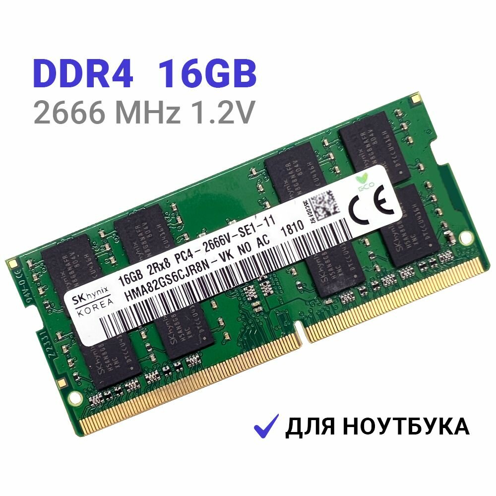 Оперативная память DDR4 16Gb 2666 Mhz SK Hynix HMA82GS6CJR8N-VK PC4-2666V So-Dimm интересное: