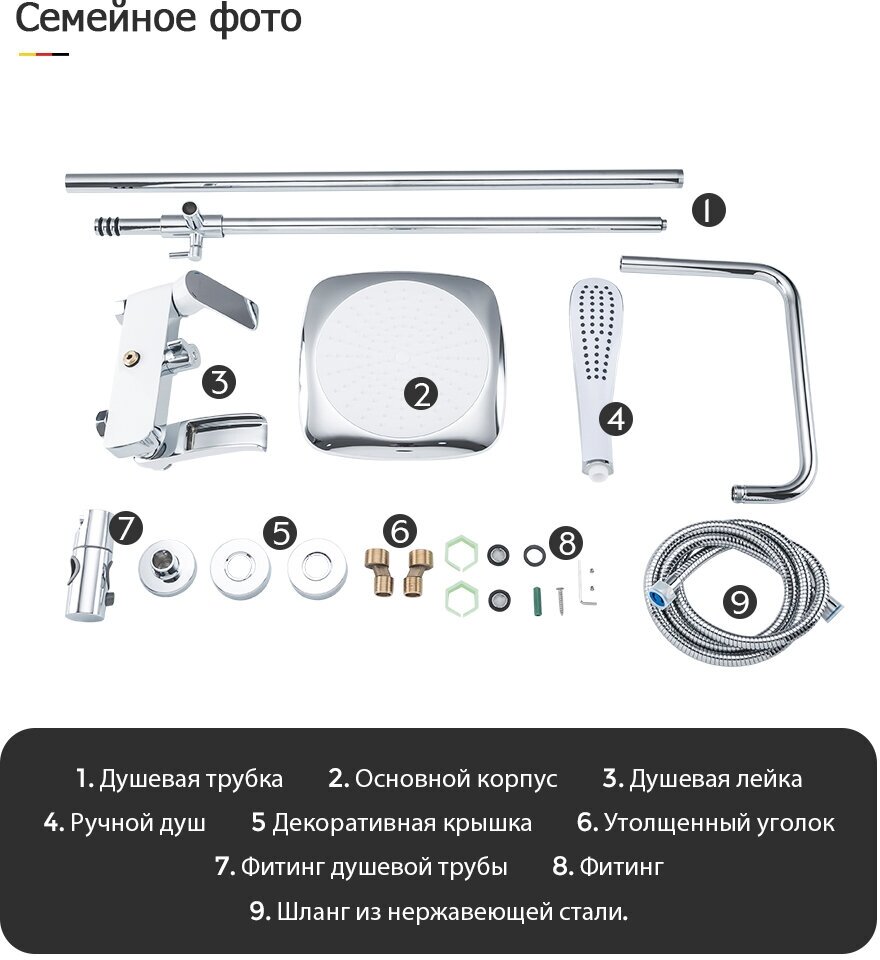 | Комплектация | тропический душ - 1 шт. / шланг - 1 шт. / лейка с держателем - 1 шт. / смеситель - 1 шт. |