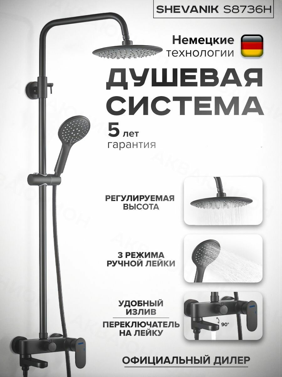 Душевая система Shevanik S9736h, черный .