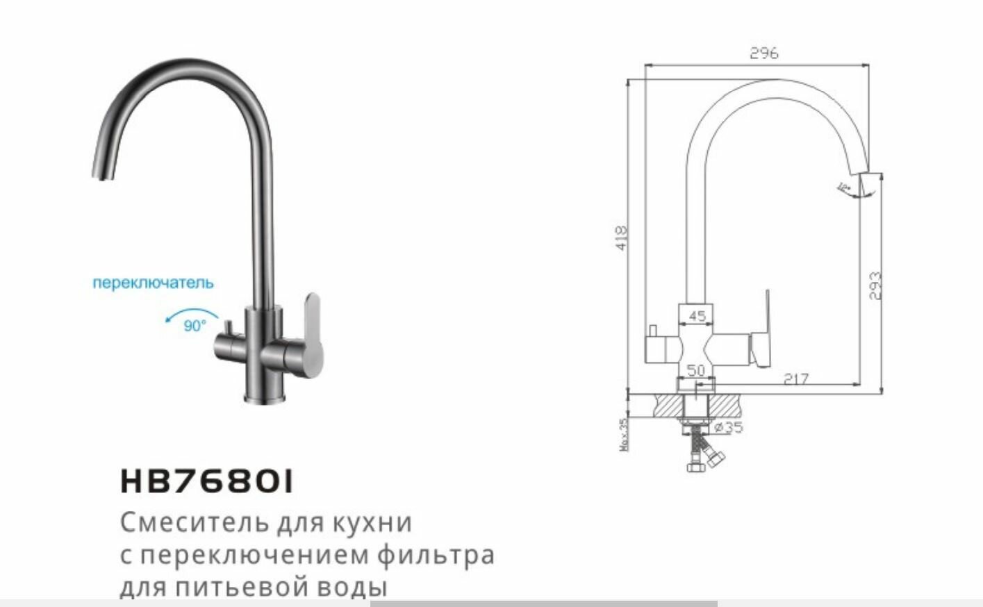 Смеситель однорычажный для кухни с выходом на фильтр HAIBA HB76801