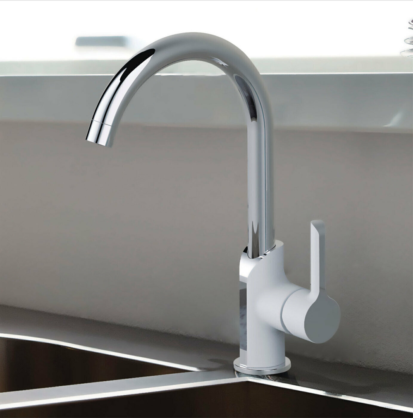 Смеситель для кухни Haiba HB71825-8, нержавеющая сталь, белый