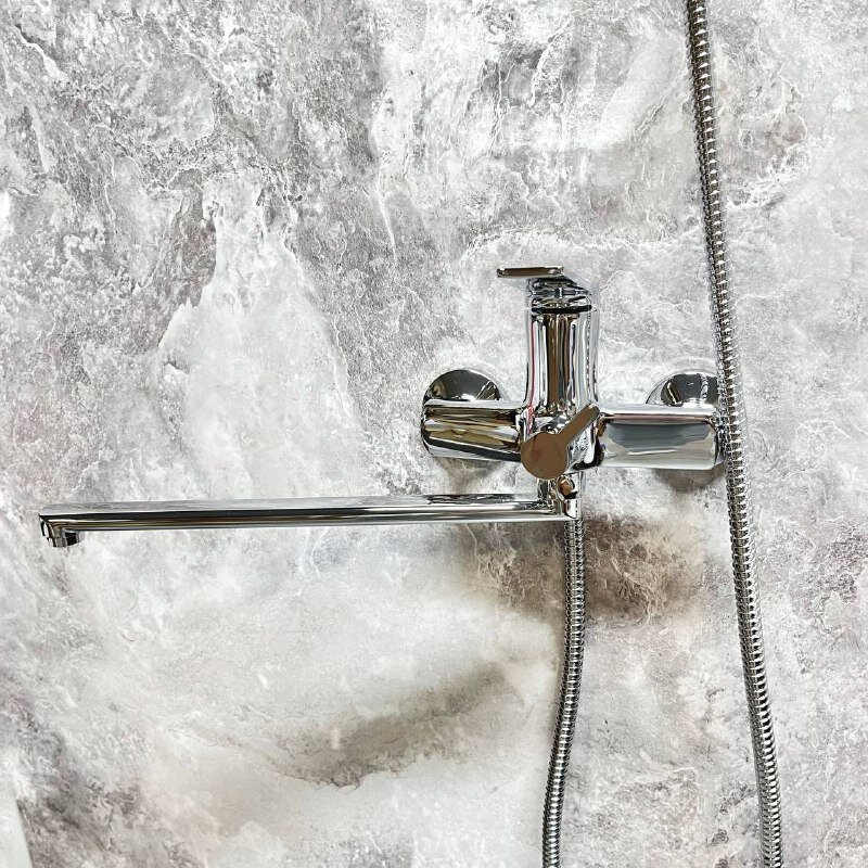 Смеситель для ванны Haiba HB22572 с длинным, поворотным изливом и переключателем в корпусе, душевой лейкой, хром