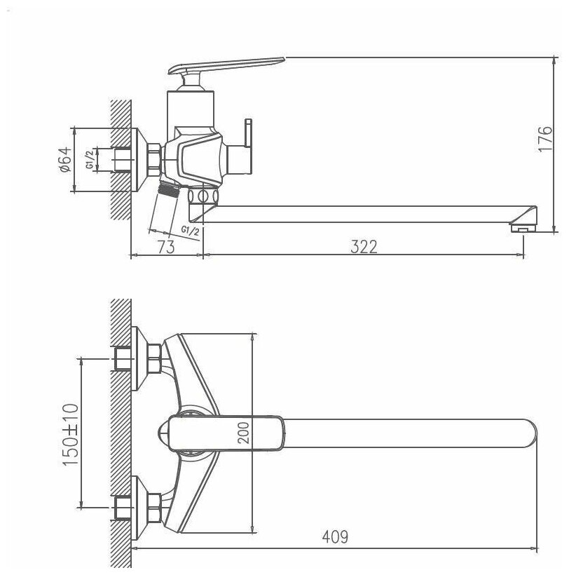 | Длина излива | 322 мм |