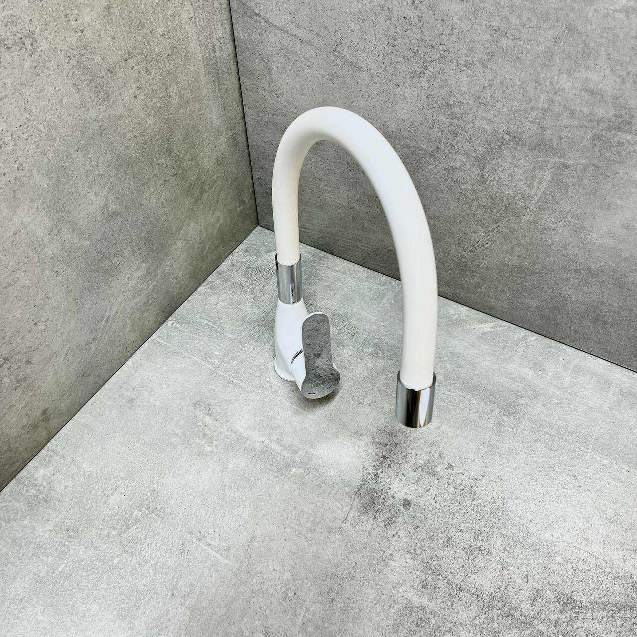 Смеситель для кухни Haiba HB70112-8 с гибким силиконовым изливом, белый/хром.
