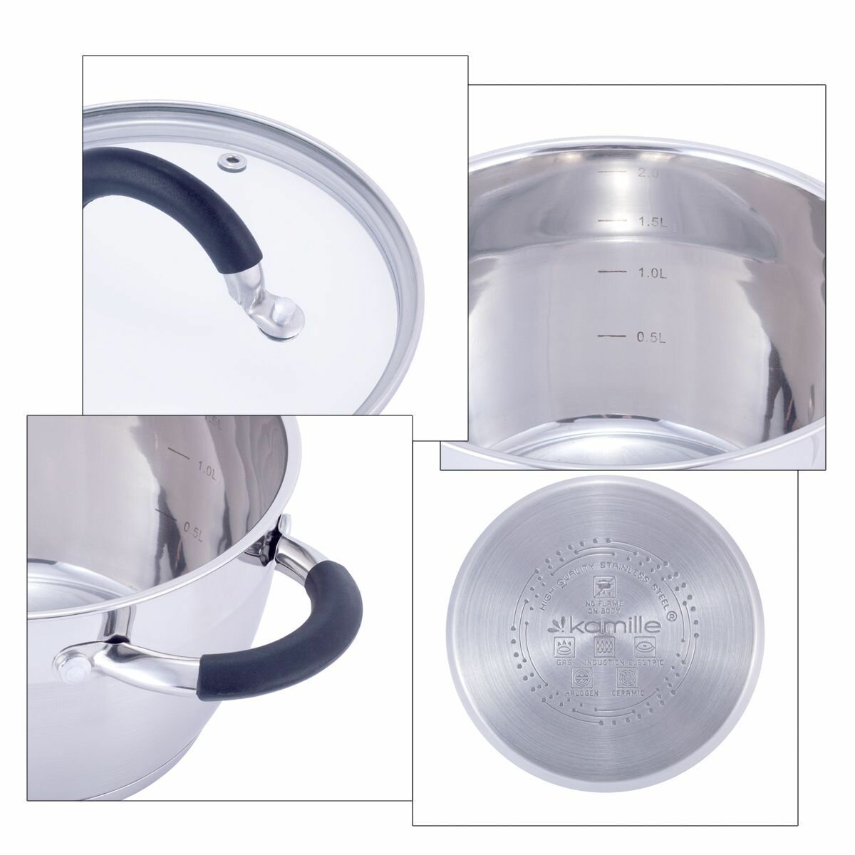 Набор кастрюль с крышкой (1.8л, 2.5л, 3.5л, 5.3л) из нержавеющей стали KAMILLE KM-5755