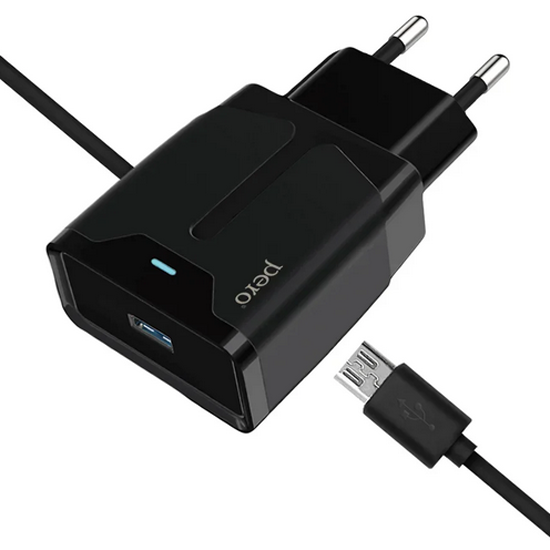 Зарядное устройство сетевое PERO TC04 1USB 2.1A + MICRO-USB CABLE черный, 1598907