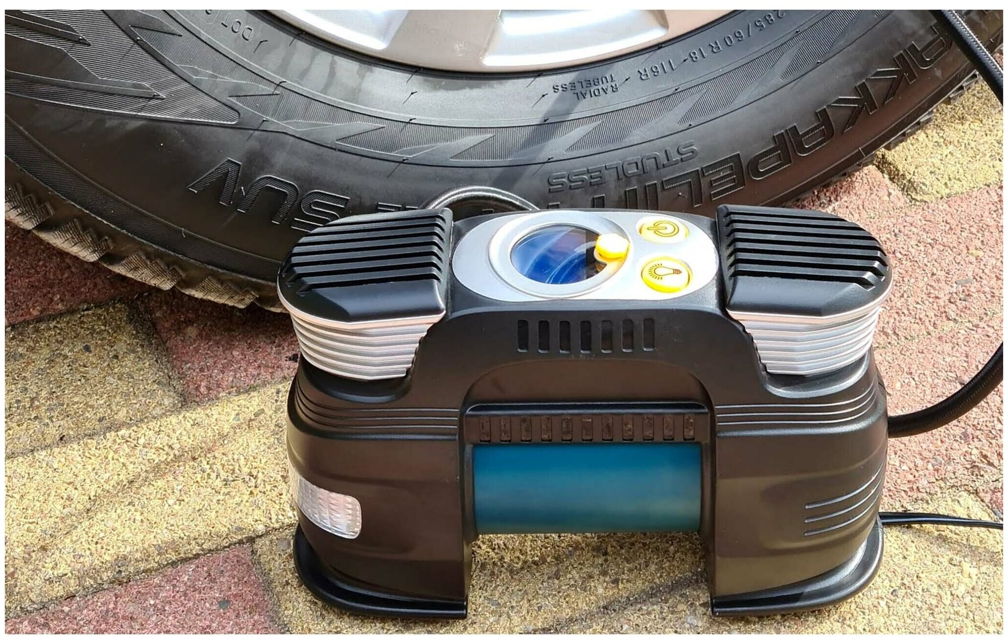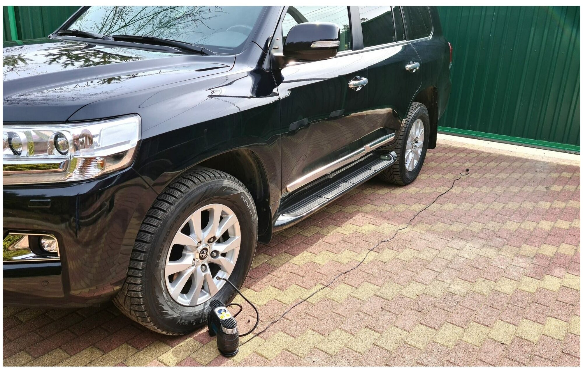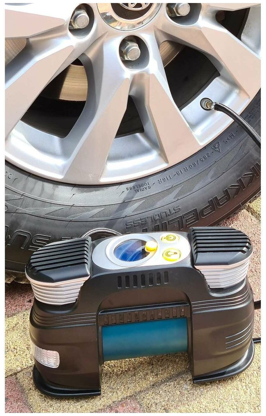 Компрессор автомобильный CityUP двухпоршневой с фонарем, 60л/мин, 300 Ватт, сумка в комплекте + переходник для АКБ