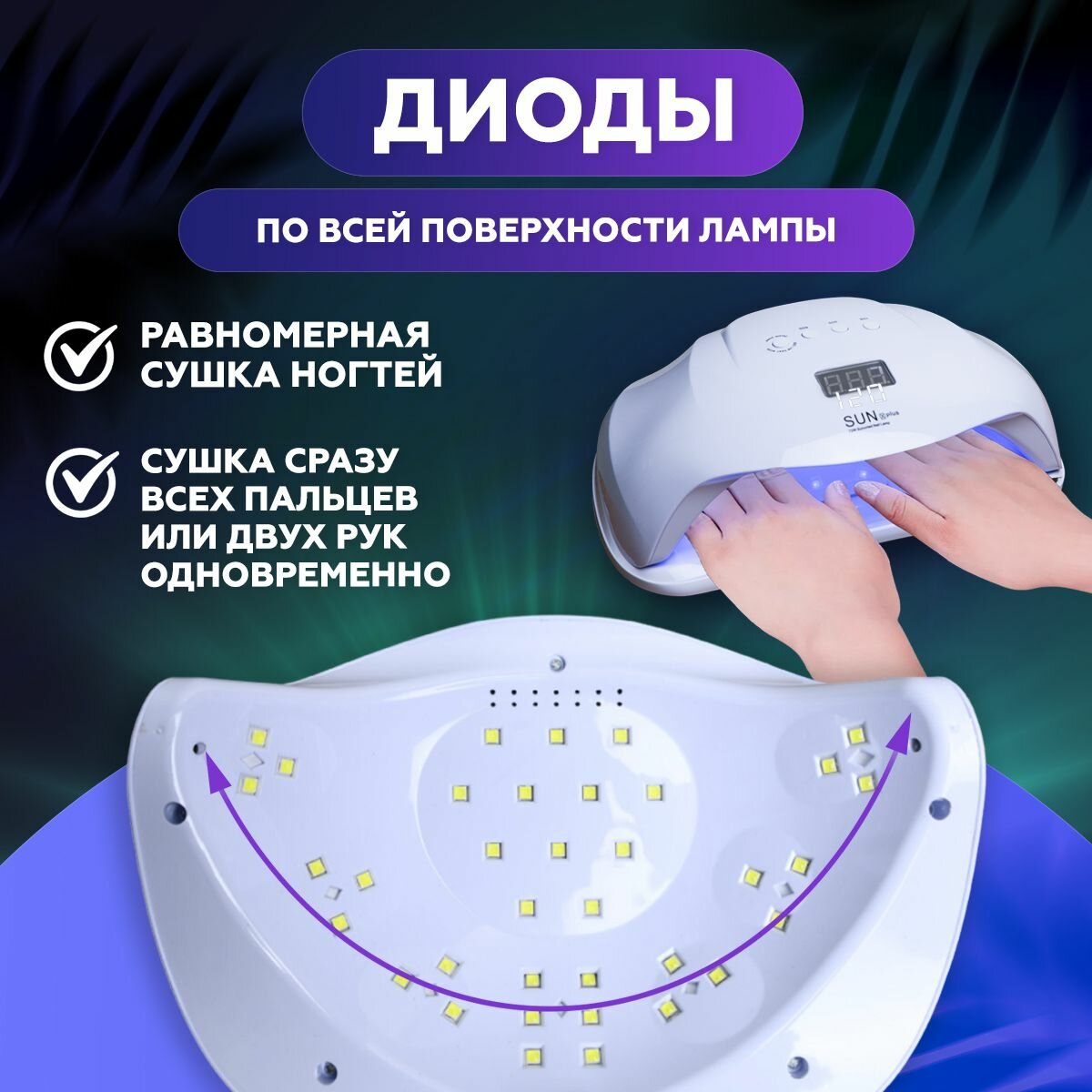 SUN Лампа для сушки ногтей X, 54 Вт, LED-UV белый + Пилочки для маникюра 10 шт / Набор для маникюра Лампа + пилочки для ногтей
