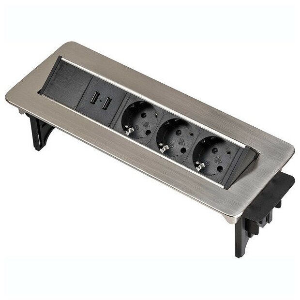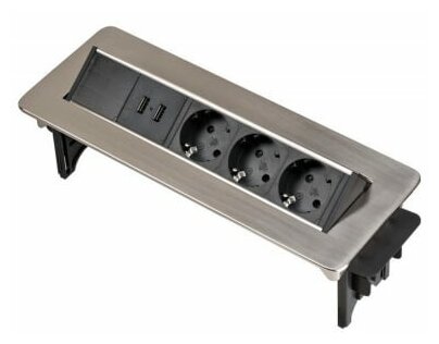 Удлинитель Brennenstuhl Indesk Power для врезки в столешницу (метал.рамка, 2 м, 3 розетки, 2 USB, IP20, 1396200113)