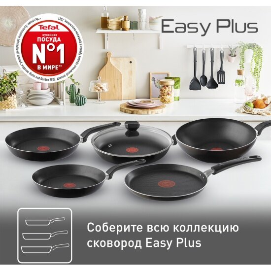 Сковорода Tefal Easy Plus, с антипригарным покрытием, 24 см