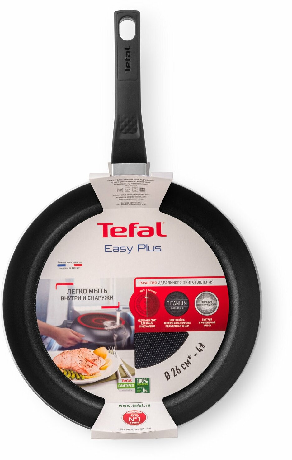 Сковорода Tefal Easy Plus, с антипригарным покрытием, 26 см