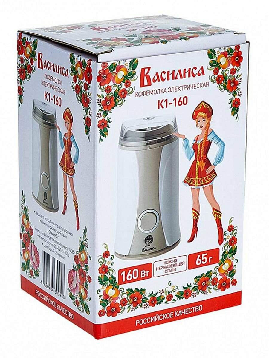 Кофемолка электрическая мощная василиса К1-160 белый с бежевым, 160 Вт (OL)