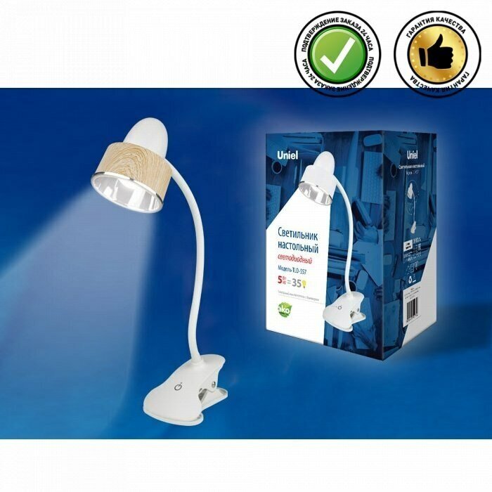 Светильник настольный прищепка Uniel TLD-557 5W 350Lm 5500K коричневый