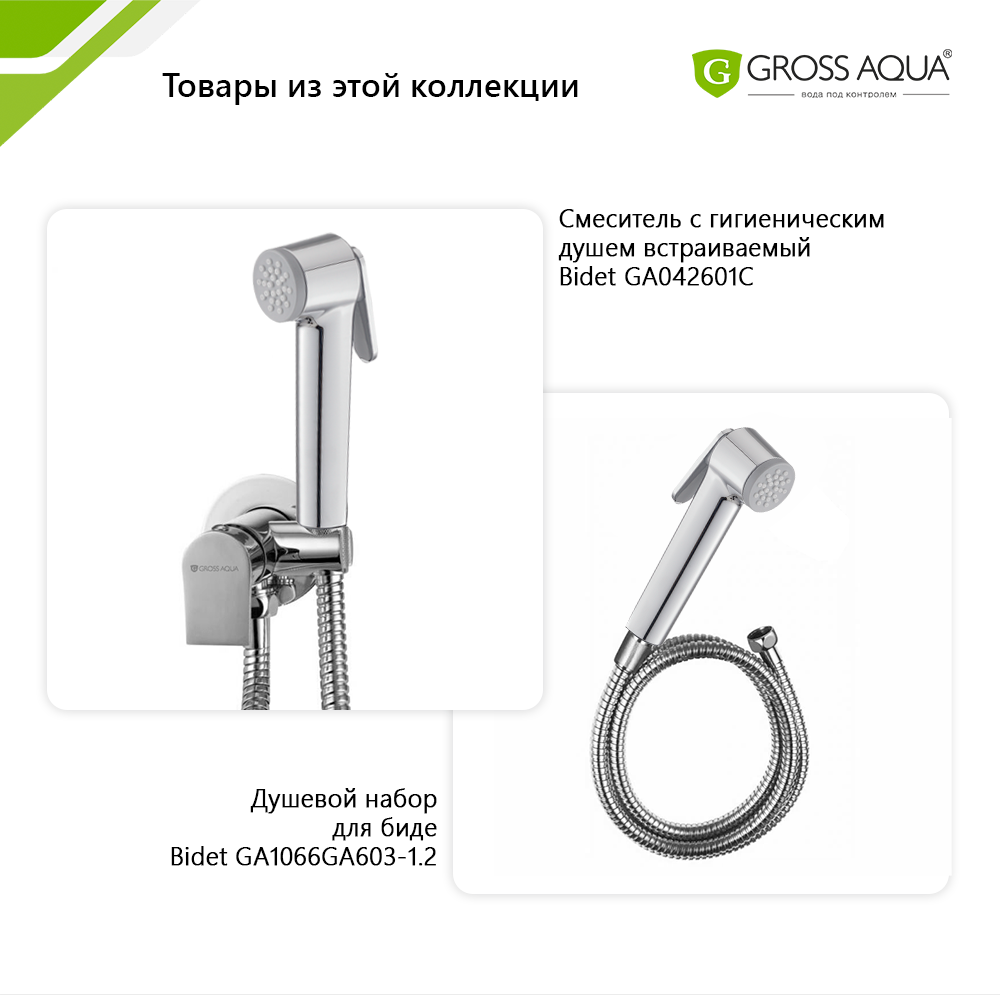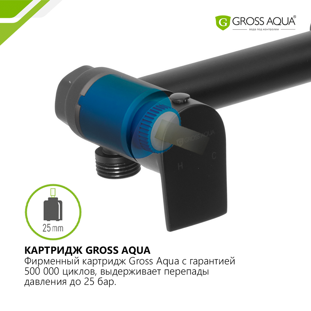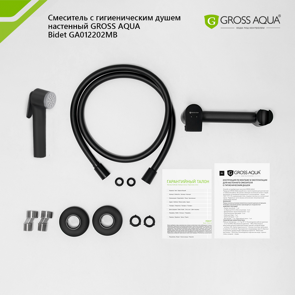 | Дополнительная информация | картридж Gross Aqua 25 мм; латунная гигиеническая лейка 1 режим; шланг для душа BlackFlex 1,2 м с защитой от скручивания Twist Free |
