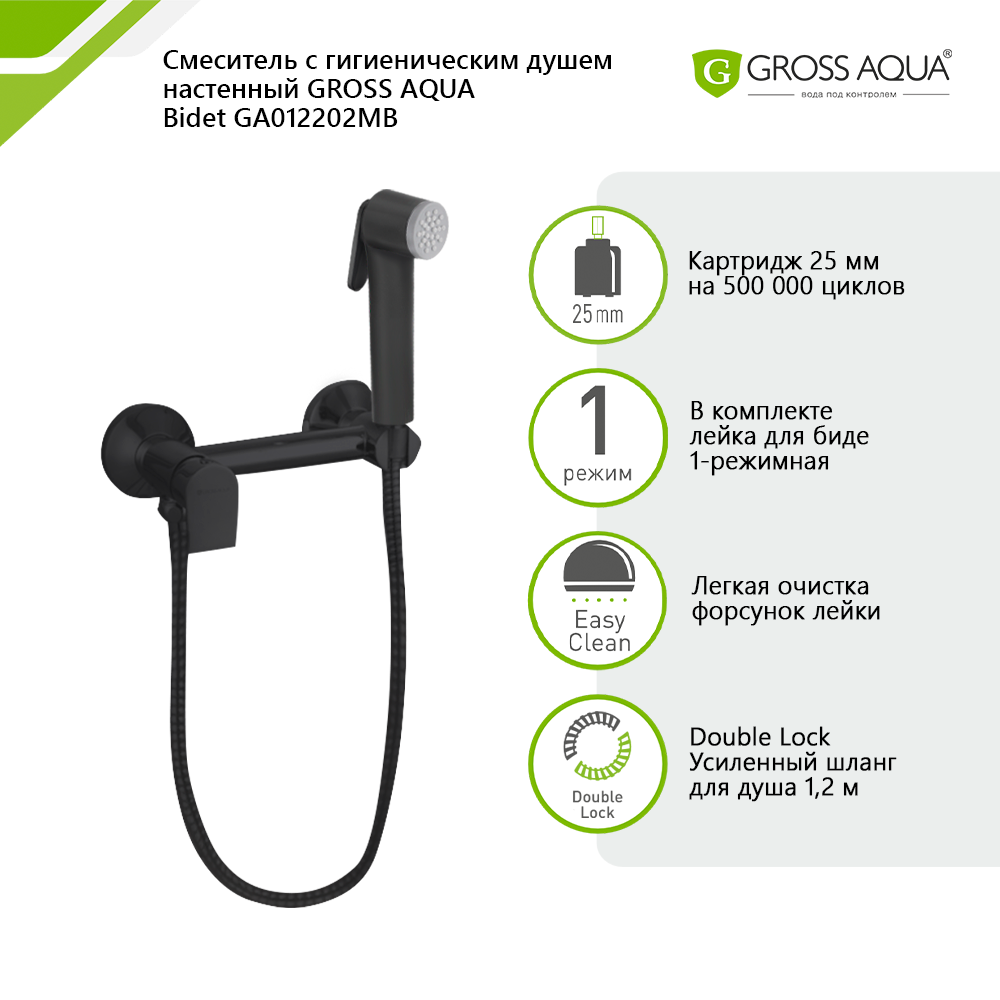 Смеситель с гигиеническим душем настенный GROSS AQUA Bidet, латунь, черный матовый, GA012202MB. интересное: