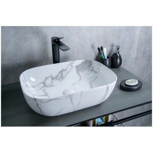 Раковина накладная GID Mnc333C 46 под мрамор/белая глянцевая