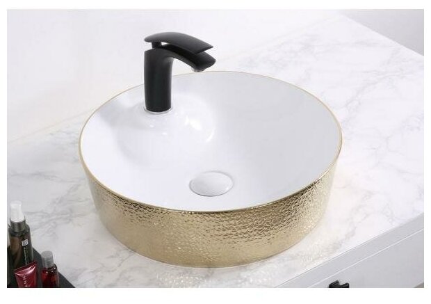 Раковина в ванную накладная CeramaLux D1306H025 43 см белый, золото