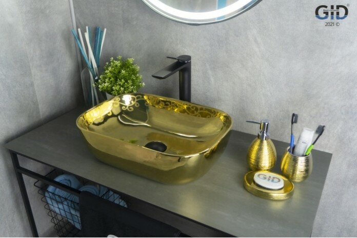 Раковина Gid Color Edition Nc424 45,4x32x13,5 см накладная золотая с узором