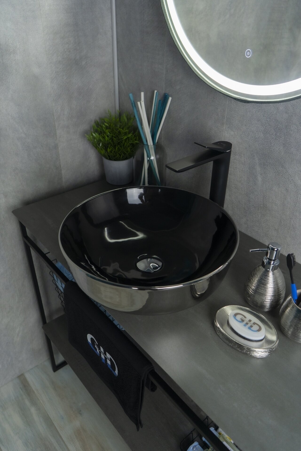 Раковина Gid Color Edition Nc411 41,5x41,5x13,5 см накладная черный с серебряным