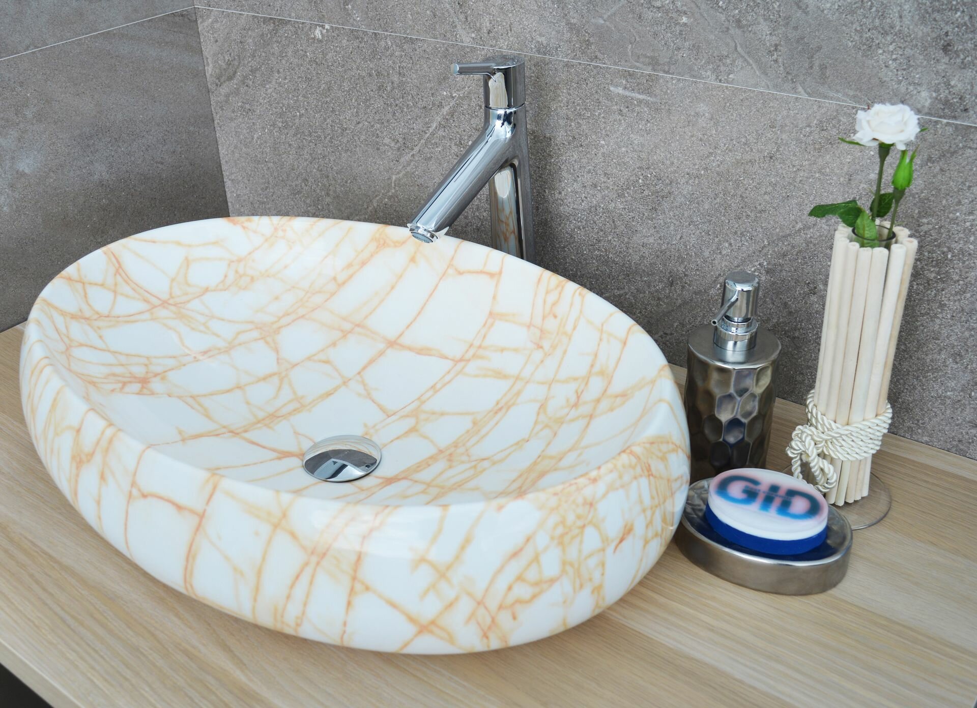 Накладная раковина мрамор 59x40х16 см, Gid, Mnc167