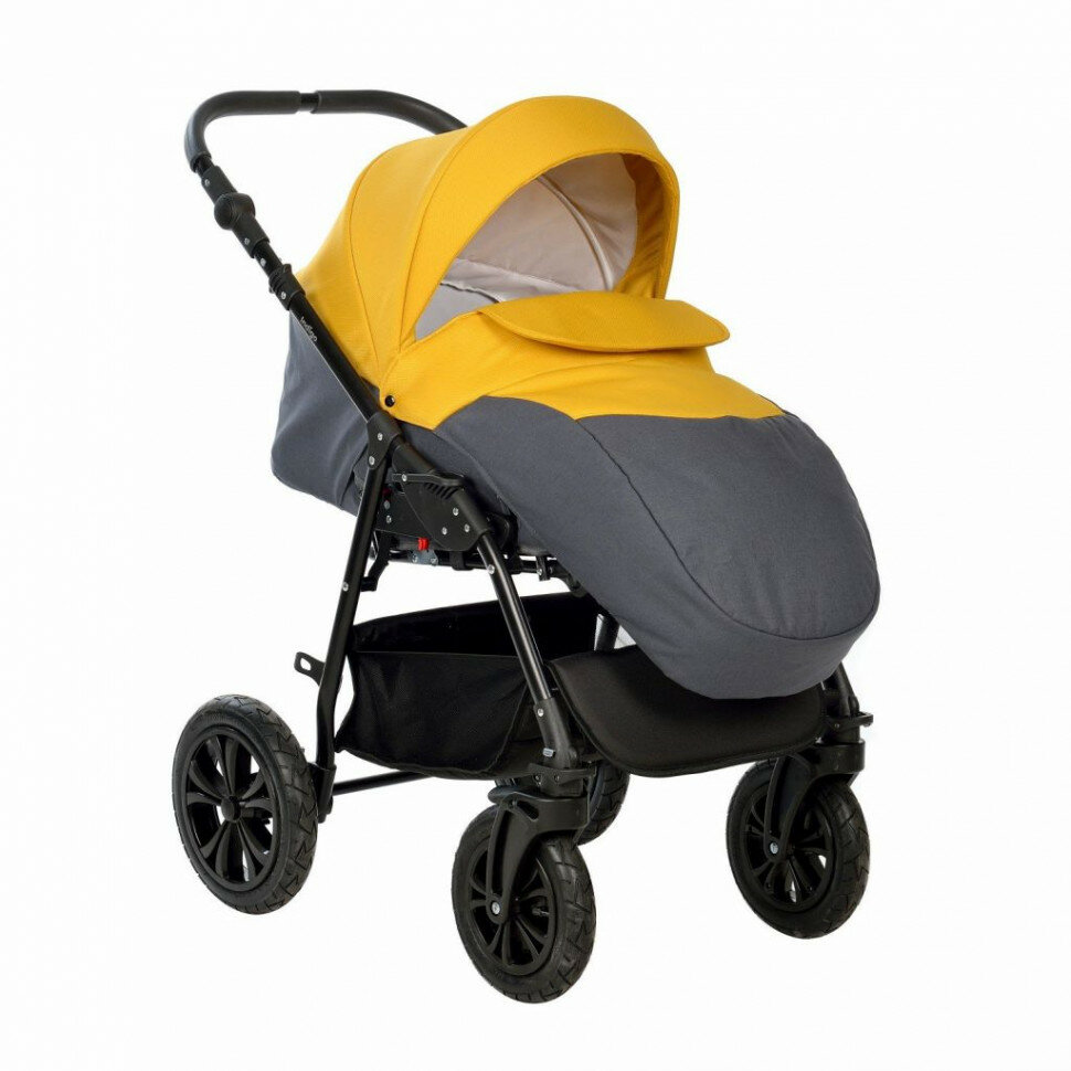 Коляска-люлька универсальная 2в1 Indigo Charlotte Sity прогулочная всесезонная (08), темно-серый, желтый