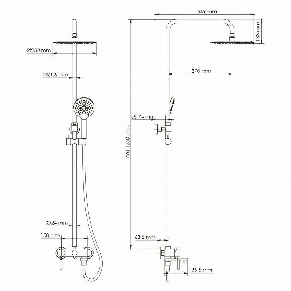 Душевая система со смесителем WasserKRAFT A14201 никель. интересное: