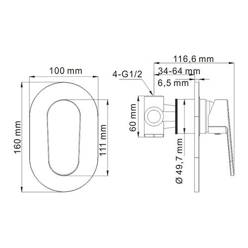 Встраиваемая душевая система для душа WasserKRAFT (A14029) без излива, с душевой лейкой